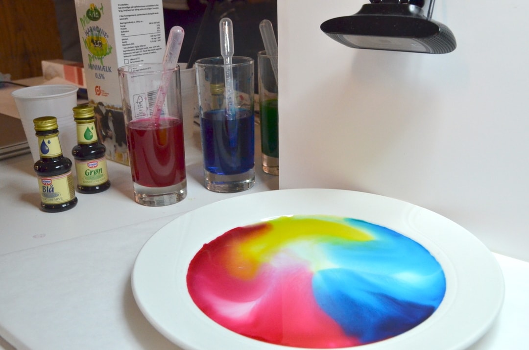 The ‘painting’ aspect is not restricted to water droplets from a pipette. Numerous experiments were performed using substances such as acrylic paint, food dye in milk with soap, and ordinary household objects. Each investigation created a new type of fun and easy gestural music-making.