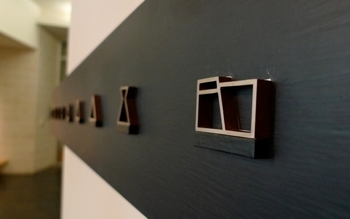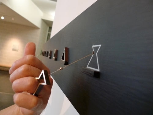 The pieces draw upon the structural vocabulary of primary, planar figures (triangles, rhombuses, etc). The tactile properties of these works are as important as the visual. As such, the pieces are mounted on a black box on a wall, where interacting with the rings will be encouraged. To facilitate this, each ring was tethered to a specifically designed mechanism within the box to keep them in place.